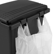 袋止めクリップでゴミ袋をしっかり取りつけ。重いゴミを捨てたときに袋ごと沈んでしまう心配も軽減されます。