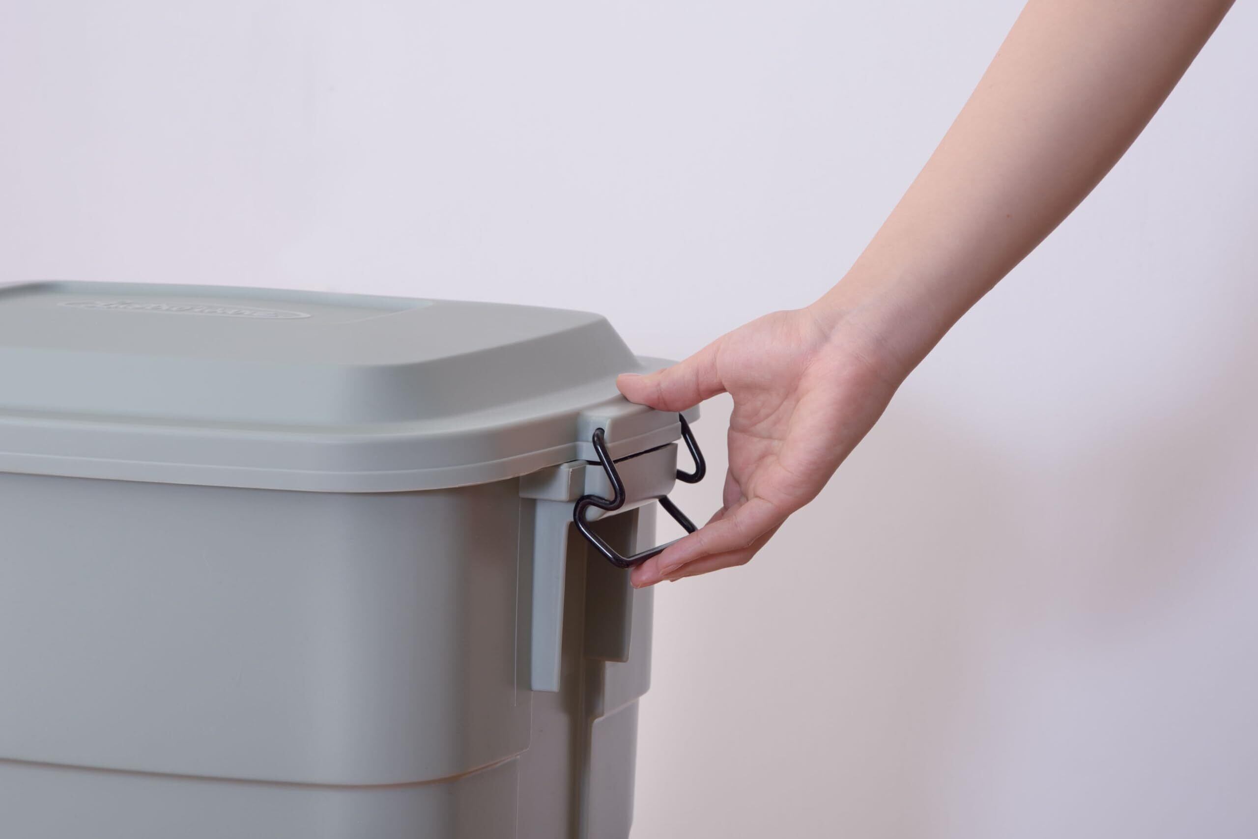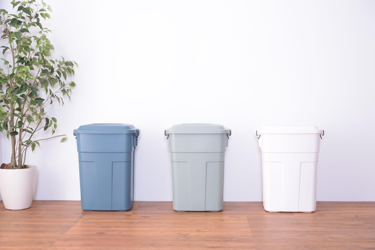 ご家庭のガレージやエクステリアに馴染みやすいカラーのスクエア型ゴミ箱。大容量の50Lなので、ペットボトルや不燃ごみなどの場所をとるゴミのストックにも。