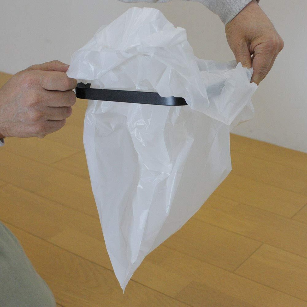 本体の中には袋止め用のリングが付いており、スーパーやコンビニのレジ袋が簡単に取り外しができます。