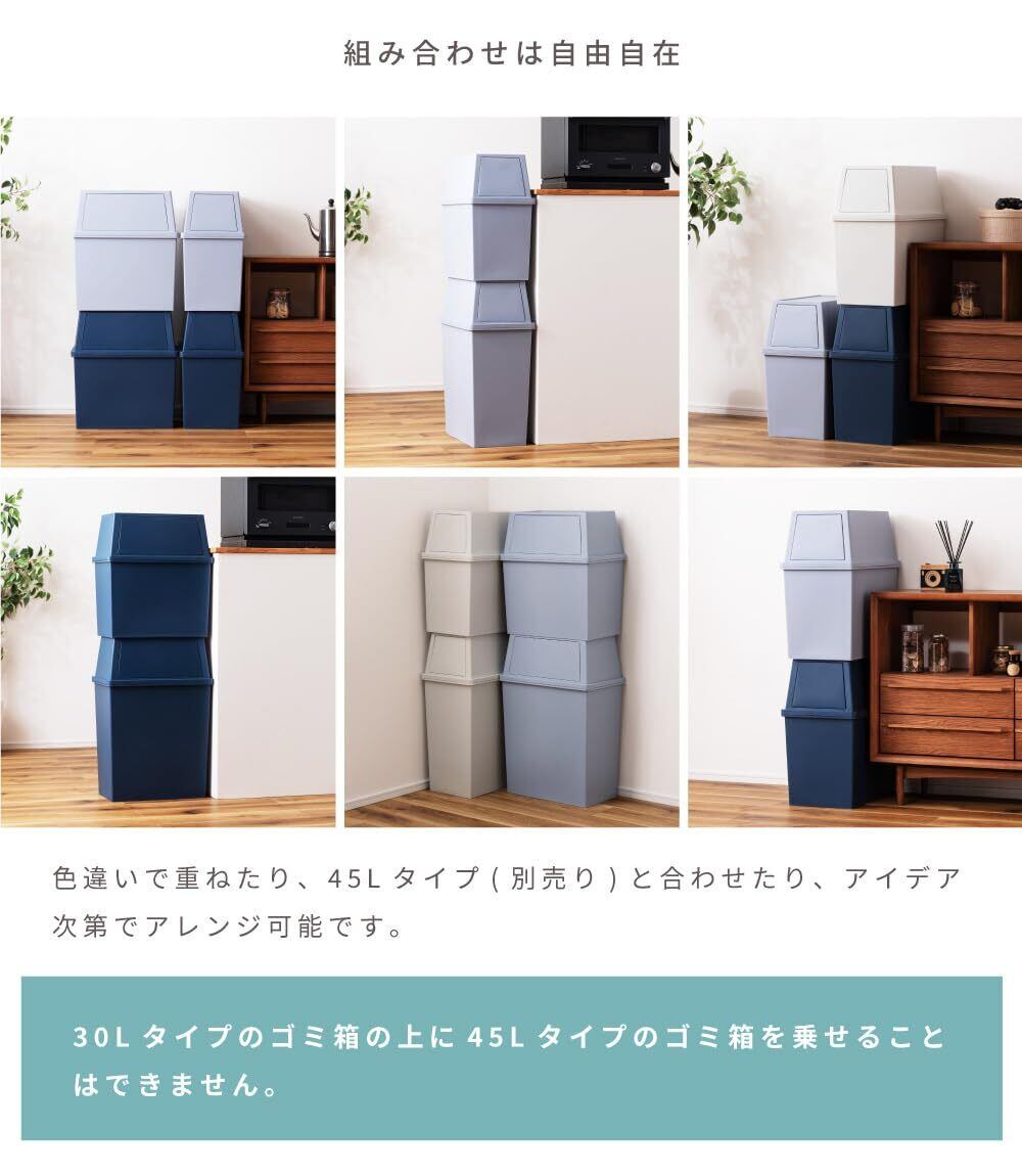 ●スタッキング可能・・・積み重ねができるため、少ないスペースで設置可能。30Lと45Lを組み合わせて積み重ねてもOKです。