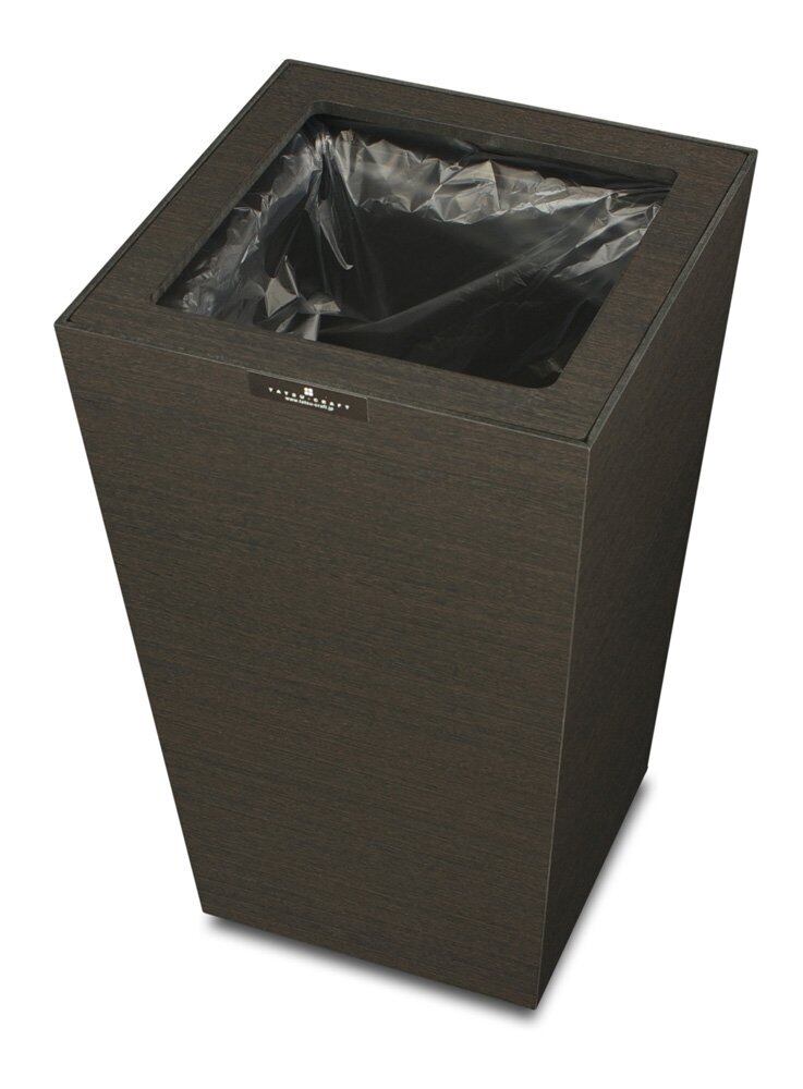 【商品仕様】サイズ 180×180×290mm 重量 915g 容量 7L 材質 プリント紙化粧繊維板(低ホルムアルデヒドのF認定品を使用) ウレタン塗装(断面部のみ)原産国 日本製(和歌山県海南市)製造メーカー 橋本達之助工芸【商品の特徴】シャープなイメージの木合板ダストボックス。フローリングにも映える木目テイストが印象的です。ソファの側に置きたくなるような上質な質感がポイントで、木合板製ながら、使い勝手には樹脂製のような便利さも持ち合わせています。上部のカバーは2重構造になっており、天面をフラットに見せるための上段カバーに加え、下段には袋留め専用の枠が付いています。ポリ袋などを取り付ければ、水分を含んだゴミも入れることができ、ゴミ箱にゴミを直接触れさせないようにすることもできます。衛生的に使えること、これは木材系のダストボックスには大切なポイントです。こちらは、より木目の質感を楽しめるブラウンタイプとなっております。インテリアにしっくり馴染むナチュラルなテイストが、フローリングにもよく似合います。是非、ソファや家具の横に添えてみてください。本来、ゴミ箱は使い勝手のよい場所に置きたいもの。しかし、見た目にゴミ箱感が出すぎたものは、ついついお部屋の隅に隠してしまいがちに…その点、バスクダストボックスはスタイリッシュなフォルムが大きな特徴。お部屋の中に素敵なアクセントが生まれます。