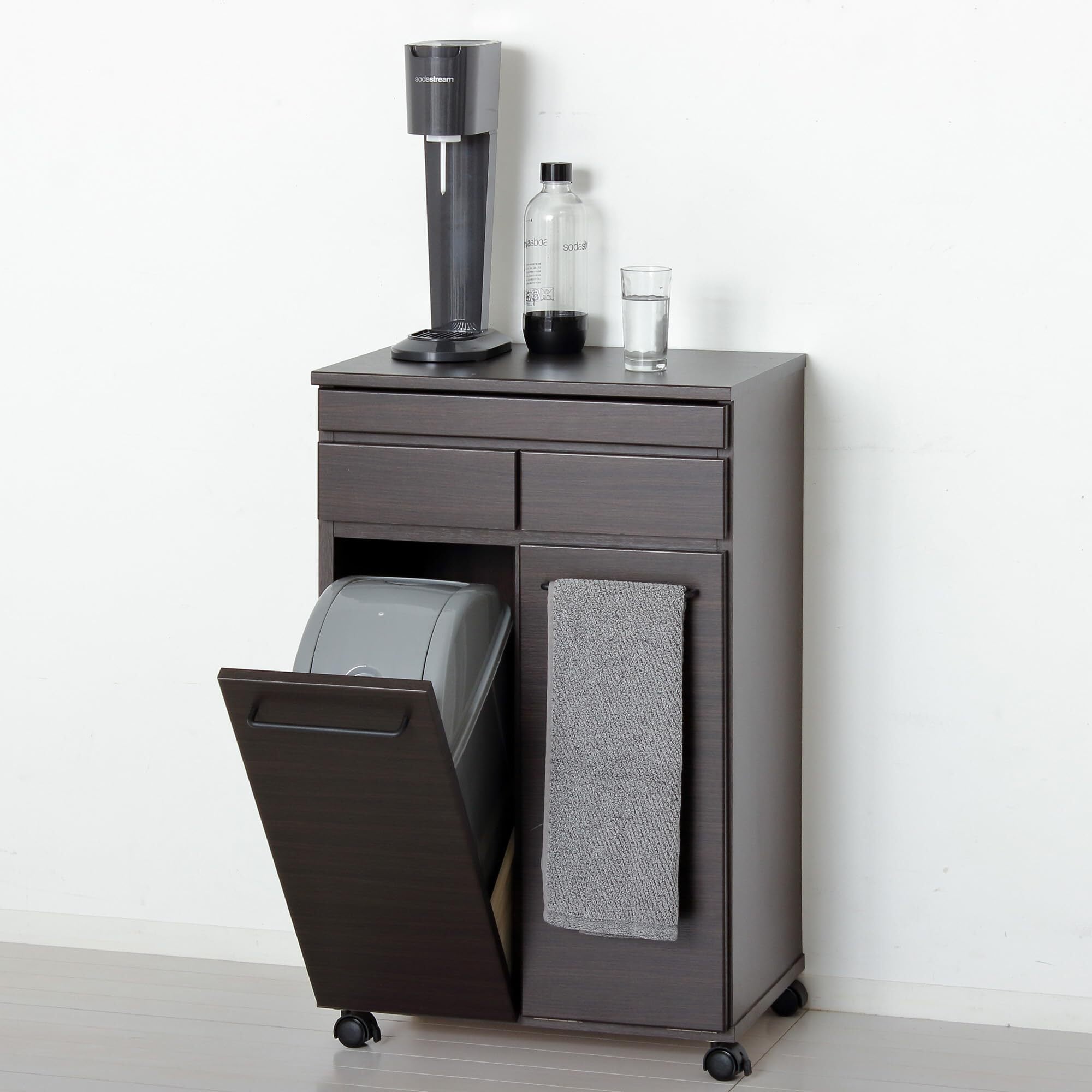 クロシオ スライド棚付きダストボックス2D 幅55 ブラウン ゴミ箱 キッチンワゴン 分別 キッチンごみ箱 ダイニング 家具調ゴミ箱 キッチン 作業台